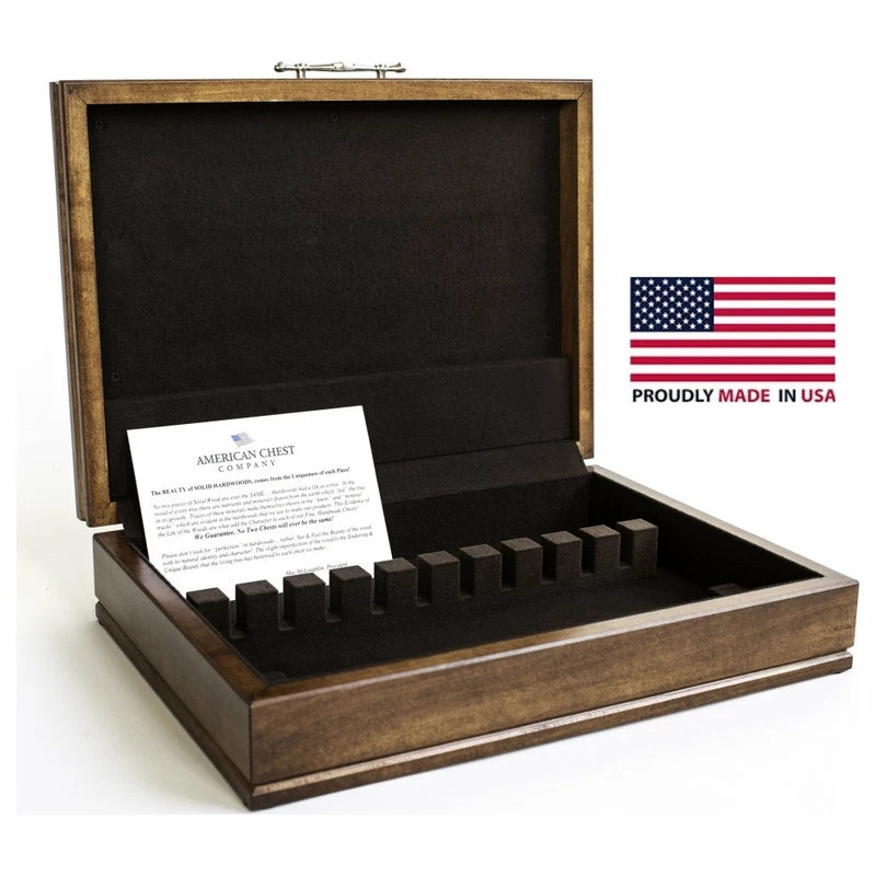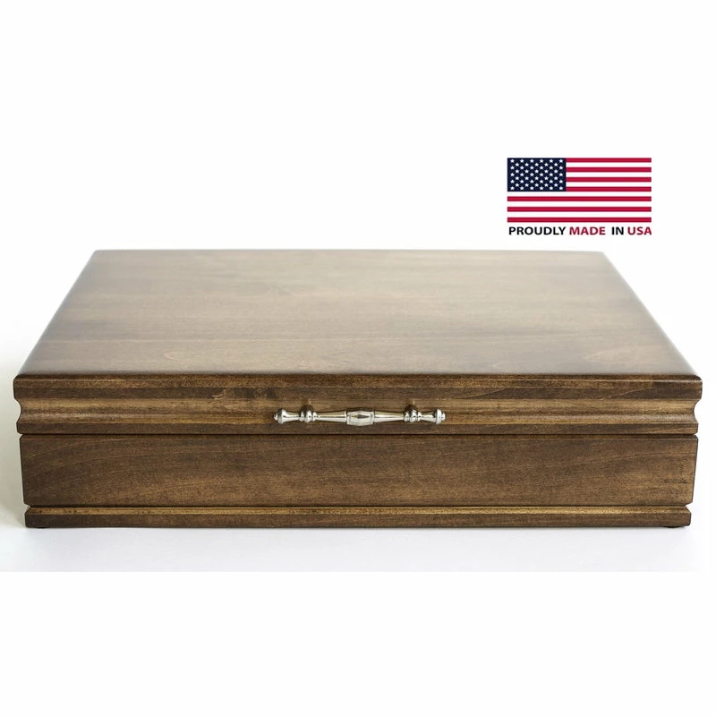 #F00W Traditions Flatware Chest, Solid American Cherry Hardwood with ENGLISH WALUNT Finish & Anti-Tarnish Lining. Made in USA by AMISH Craftsmen.