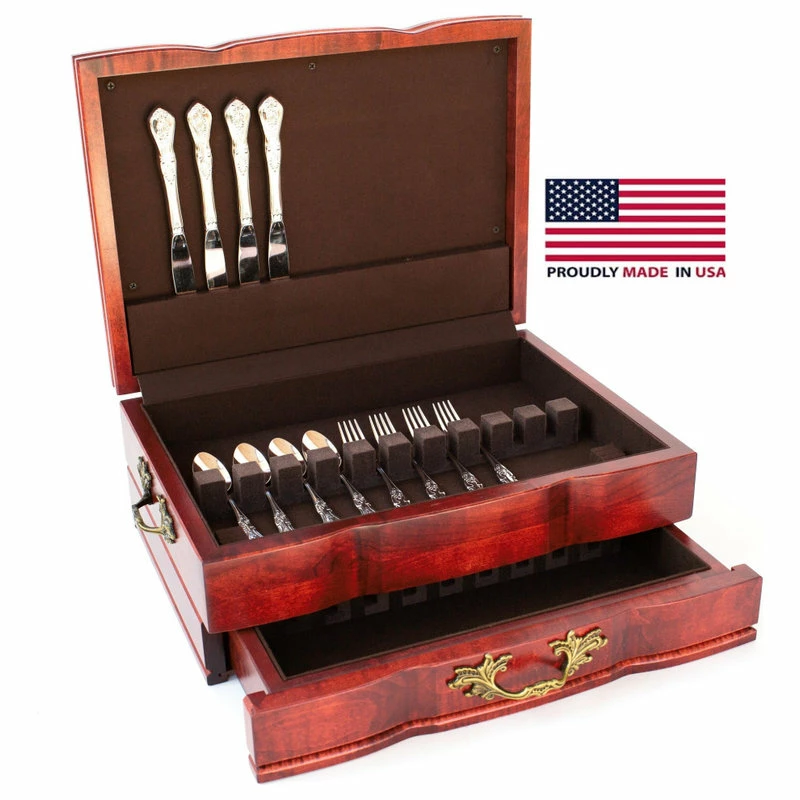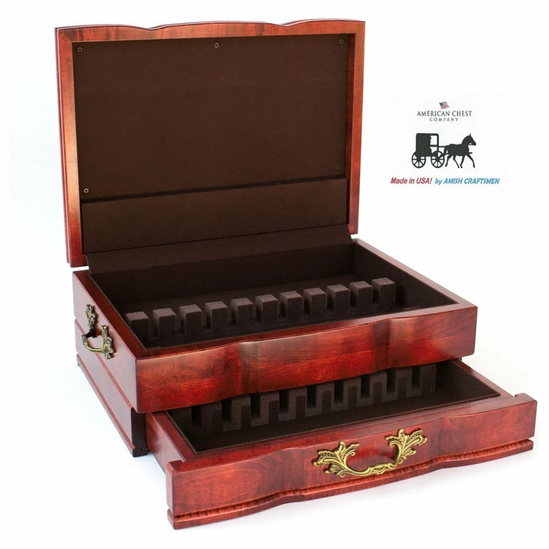 #F02C Grandeur Flatware Chest, Solid American Cherry Hardwood with HERITAGE Cherry Finish & Anti-Tarnish Lining. Made in USA by AMISH Craftsmen!
