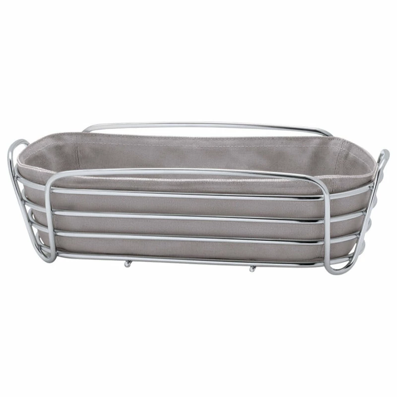 Function meets minimal style in the DELARA Bread Basket. Featuring taupe textured cotton with steel framework, this basket is a chic way to serve bread at breakfast, lunch and dinner.