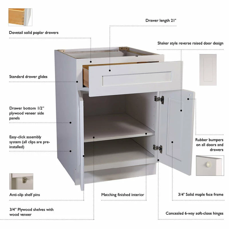 - Overall Depth: 24″ (measured from back most to front most part of cabinet)