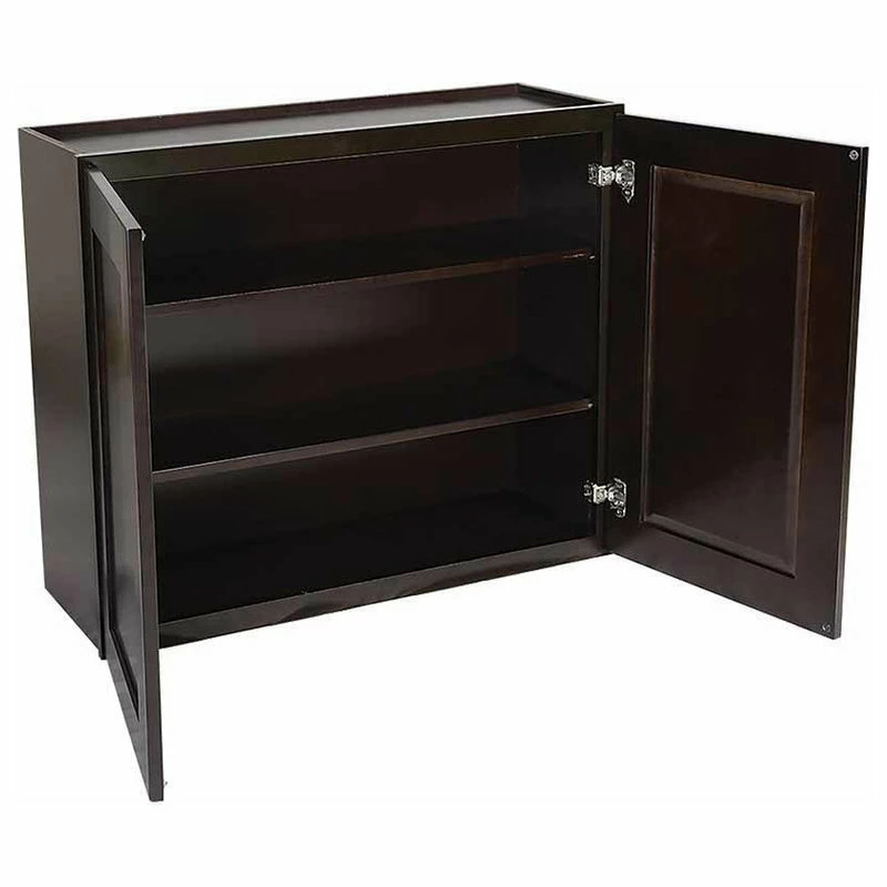 - Two (2) sleek doors conceal a pair of shelves for efficient organization
