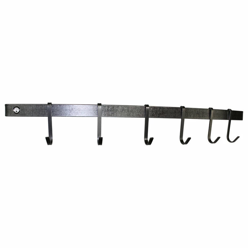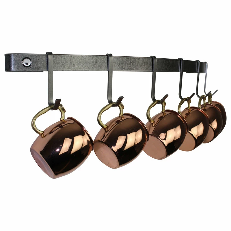 SKU: MR1 HS Categories: Dinnerware & Stemware Storage, Kitchen Storage & Organization Tags: Cookware rack, Cookware rack wall mount, Enclume, Enclume bookshelf pot rack, Hammered steel, Hanging bar pot racks, Kitchen organization, Kitchen pot hanging rack wall, Kitchen storage, Moscow mule mug wall rack, Pan rack, Pot racks, Utensil bar rack, Wall racks