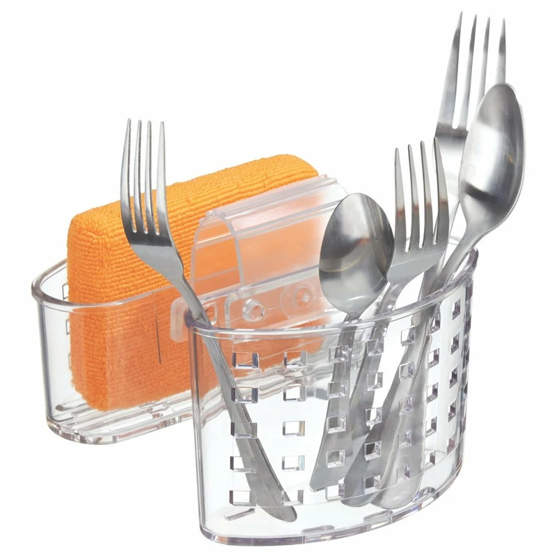 Keep your glassware safe with the iDesign Sink Saddle Organizer. This organizer is a great way to use your sink divider as a place to store scrubbers, brushes, sponges, or soap. Made of clear plastic, simply hang over your sink divider for instant added storage. It’s designed to grip to the sink to prevent slipping. Measuring 6″ x 6.5″ x 5.5″, the iDesign Euro Sink Saddle Protector Mat is the accessory you need to protect your sink and dishes.