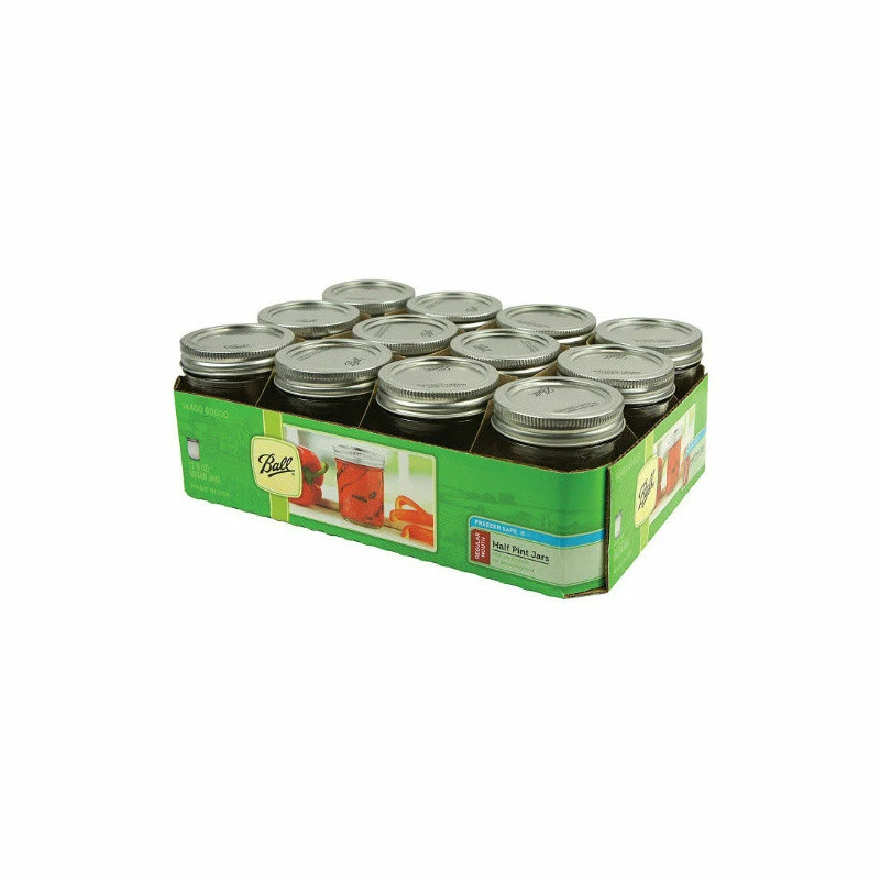 Ballยฎ Regular Mouth 1/2-Pint (8 oz.) Glass Preserving Jars are ideal for fresh preserving recipes such as jams, jellies, conserves and preserves. Our famous glass jars and closures go beyond fresh preserving to help you with serving, creative dรฉcor and gift giving.