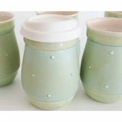 Best Sale 🥰 Sarah Welch Pottery Turquoise Ceramic Travel Mug With Silicone Lid, 16 Oz. 🔔