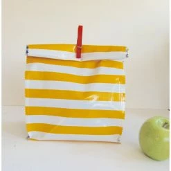 Flash Sale 👏 Cute Bright Things Oil Cloth Lunch Bag, Yellow Stripes And Blue Gingham 🛒