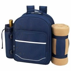 Hot Sale 🔥 Picnic At Ascot Deluxe Equipped 2 Person Picnic 🎒 Backpack With Blanket -Navy/Chevron 🧨