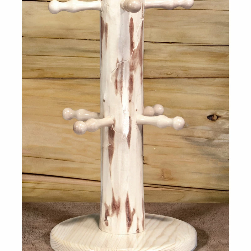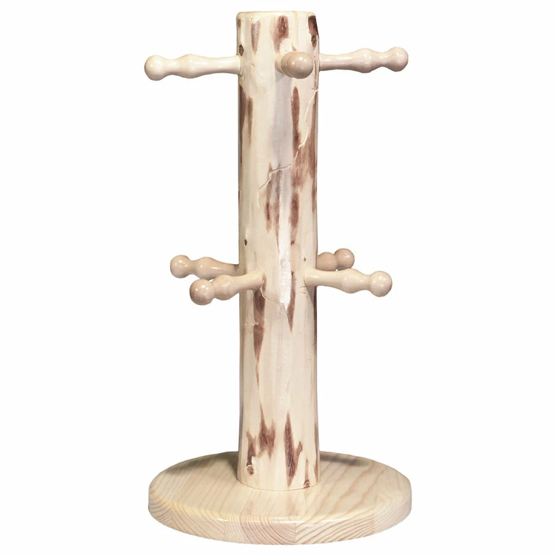 This delightful cup holder will finish the rustic decor in your kitchen! Handcrafted using solid, American grown wood. Designed for standard coffee cups, the unit holds 8 of your favorite Java holders. Comes fully assembled. This item comes professionally finished with a premium grade lacquer finish. 20-year limited warranty included at no additional charge. Hand crafted in Montana U.S.A.!