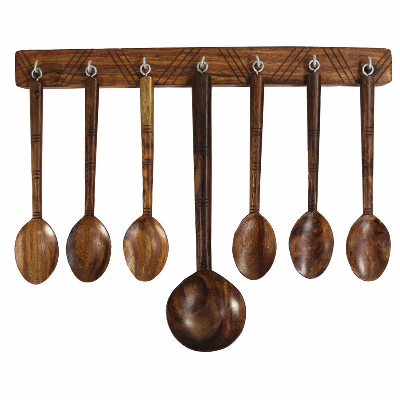 A decorative spoon set, perfect for displaying in your kitchen or dining room. The Rosewood Collection displays beautiful designs with each piece being individually hand carved by an individual craftsman boasting a new level of elegance. In addition to being handmade and hand polished, natural Rosewood has a distinct look and is perfect to use in home decoration accent pieces. Compliment your home with the addition of this decorative accent.