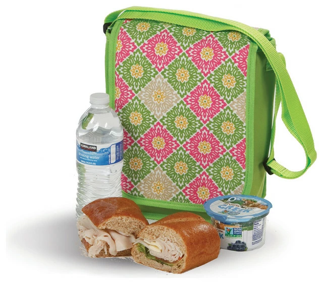Take your lunch, drinks, snacks and fruit to school or work with our Picnic Plus fully insulated structured lunch bag. Featuring an easy clean, food safe PEVA lining, 2 inside mesh pockets hold ice packs (not included). Adjustable shoulder strap included.