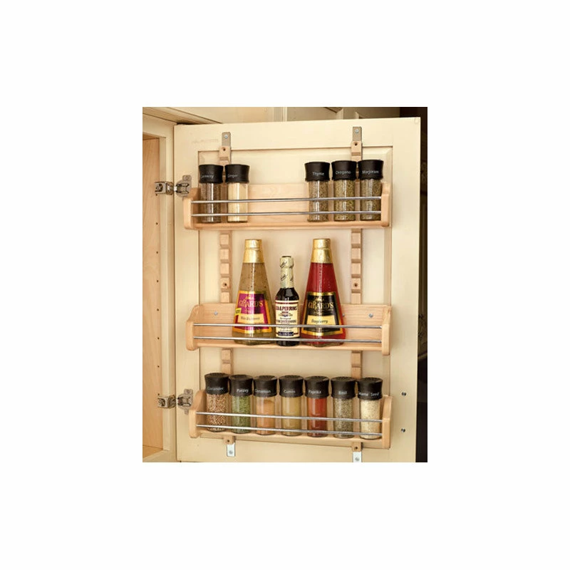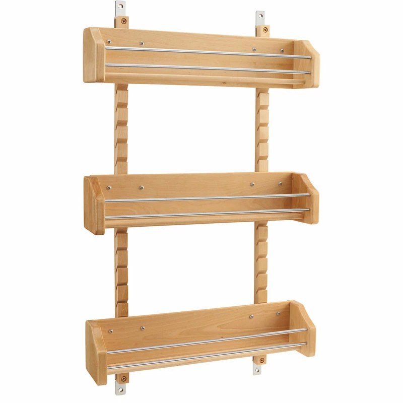 Add space, flexibility and convenience with Rev-A-Shelf’s Adjustable Door Mount Spice Rack. Minimum Opening 16-3/4″. Mounting brackets have up to 5″ of adjustability, just loosen screws, adjust, then retighten. Screws included