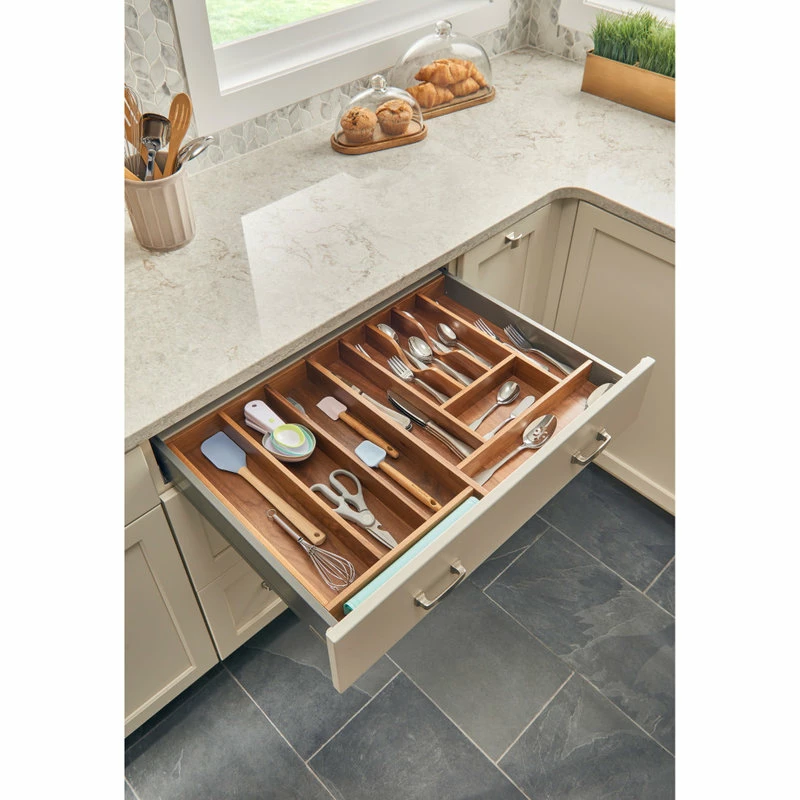 Designed to bring organization to your cutlery drawer. The 4WCT-WN Series is made of beautiful walnut with a UV cured satin finish. The series features simple drop-in installation and two shallow depth trim-to-fit sizes to accommodate to any full access (frameless) kitchen cabinet.
