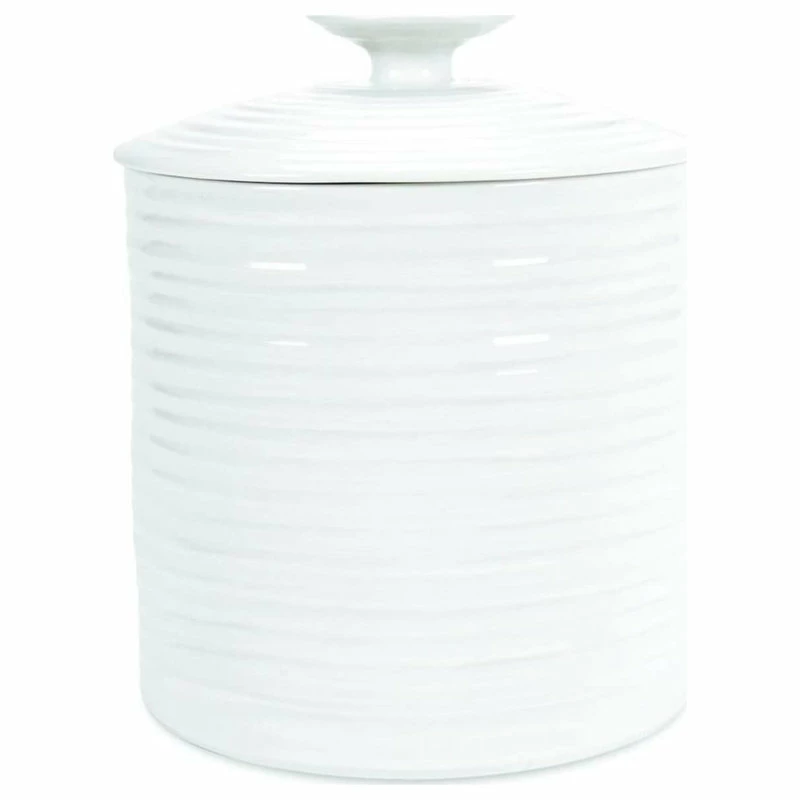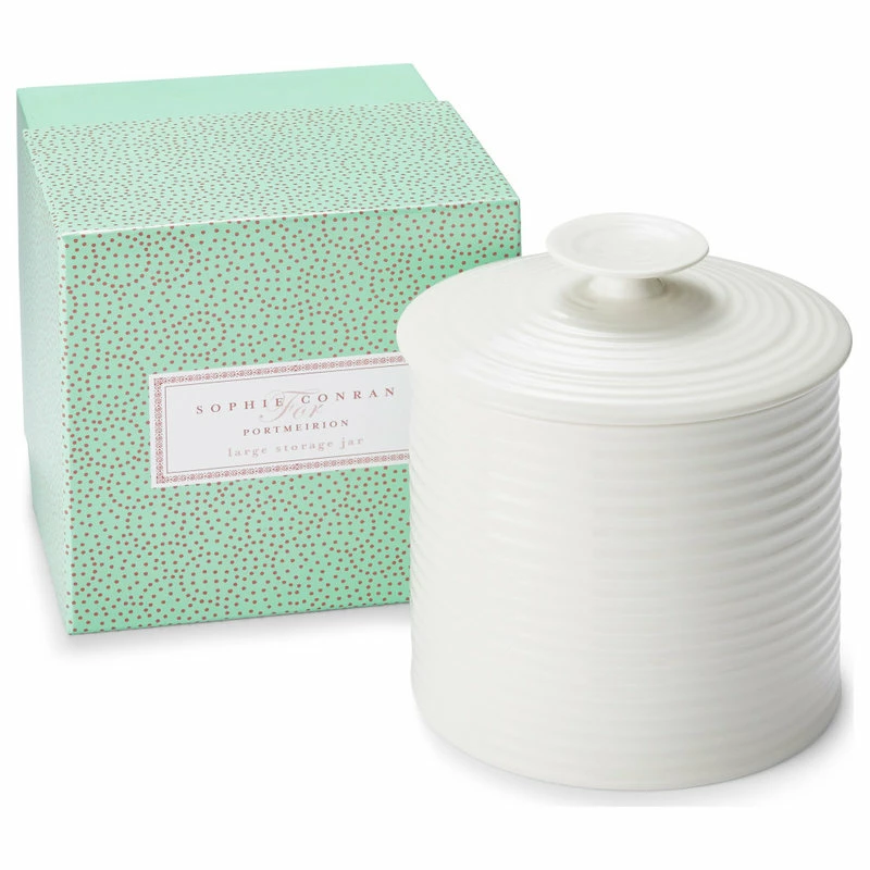 The beautiful and practical Sophie Conran for Portmeirion storage jar has the look and feel of a traditional earthy, hand-thrown piece and is great for storing anything from rice to biscuits or pasta. Professionally crafted of high-quality fine porcelain in fresh white and coated with a rock-hard translucent glaze, this durable jar is strong and chip resistant. This large canister measures 6.25 inches and has a capacity of 80-ounces. This jair pairs well with all existing home and kitchen decor. Use this jar individually or pair with other canisters in the Sophie Conran Collection. This piece makes for a lovely housewarming or Mother’s Day gift. Dishwasher safe. Sophie Conran for Portmeirion is a multi-award-winning collection of dinnerware, cookware, bakeware, glassware and home accessories. Designed for modern-day living by cook and loving mother of two, Sophie Conran, this beautiful range is perfect for easy entertaining.