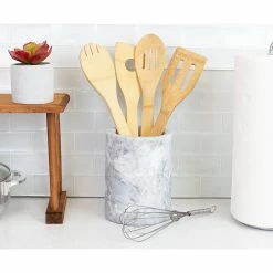 Cheap 🌟 HOME BASICS Heavy Duty Large Capacity Compact Marble Utensil Holder, White 🎁