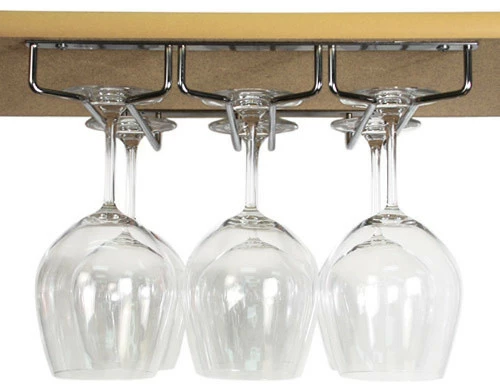 Space saving and multi-functional, the True Fabrications under cabinet stemware rack can hold up to nine glasses. Sleek and stylish, this rack is constructed of chrome plated metal and is great for mounting in a visible place for display or for out of sight storage. The wide openings make it easy to slide glasses onto the rack and all it takes to mount the rack is the four included screws. Complete with a 10 year manufacturer’s warranty, this storage rack is also great for using as a drying rack.