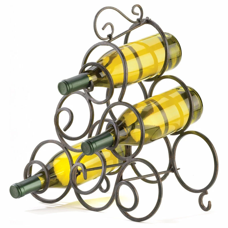 Place your favorite vintages at center stage with this dramatic display rack! Graceful spirals of wrought iron create an eye-catching display while cradling six bottles of wine at a vintner’s ideal storage angle. A stylish space-saver that lends an elegant touch anywhere!