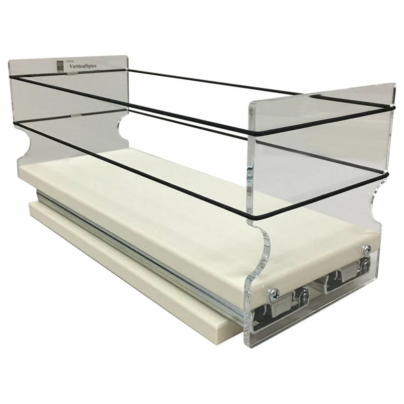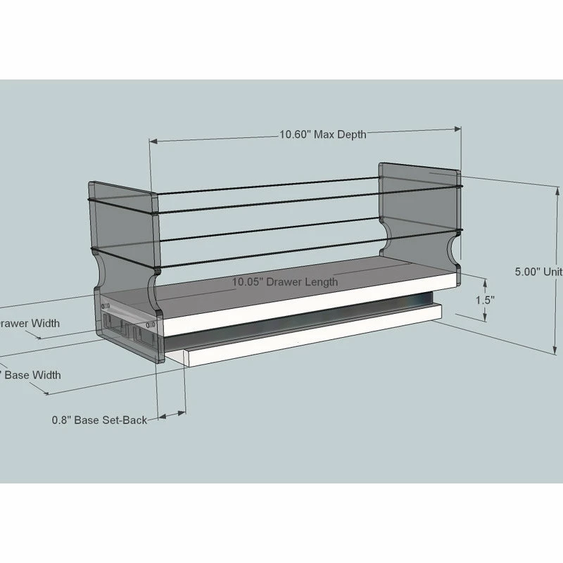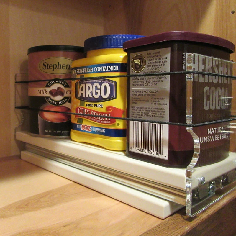 This is one beefy drawer. Two slides to handle the heavier loads. This drawer will fill in the last space in your kitchen cabinet or provide a special service by playing bartender for your hard to reach bottles. Another nice sized drawer to accommodate multiple sized containers and easily access the back row without emptying the shelf.