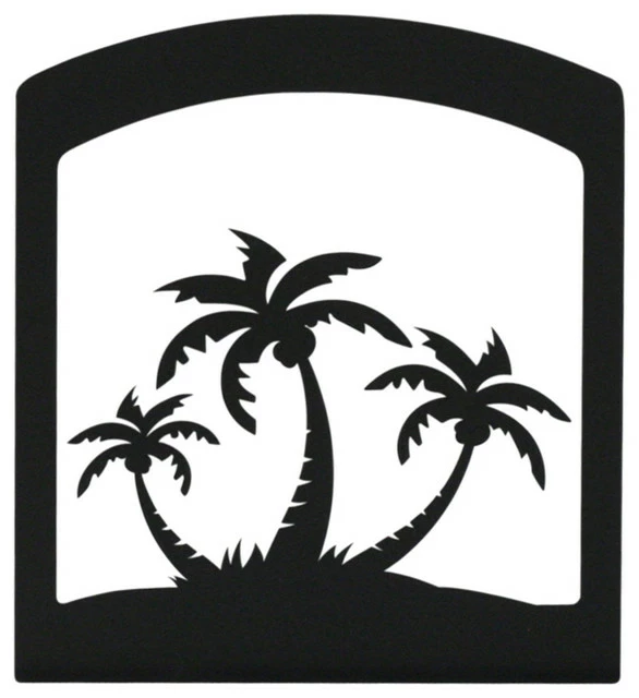Store your napkins in the unique Triple Palm Tree Napkin Holder. This square holder is made from sturdy wrought iron with a cut-out palm tree design. Display it in a tropical-style kitchen or dining room for a cohesive look.
