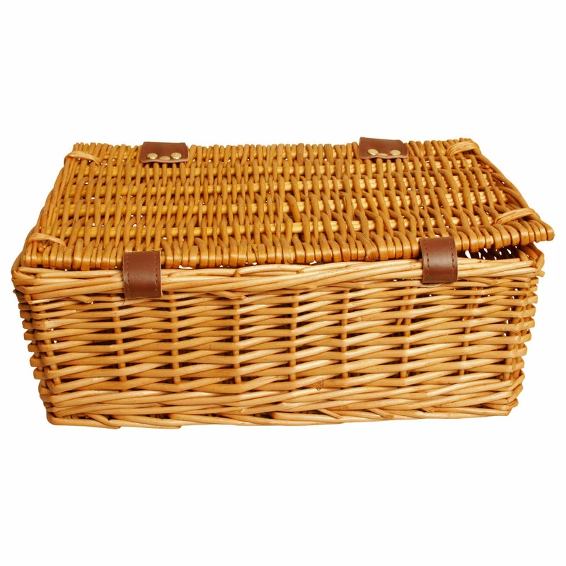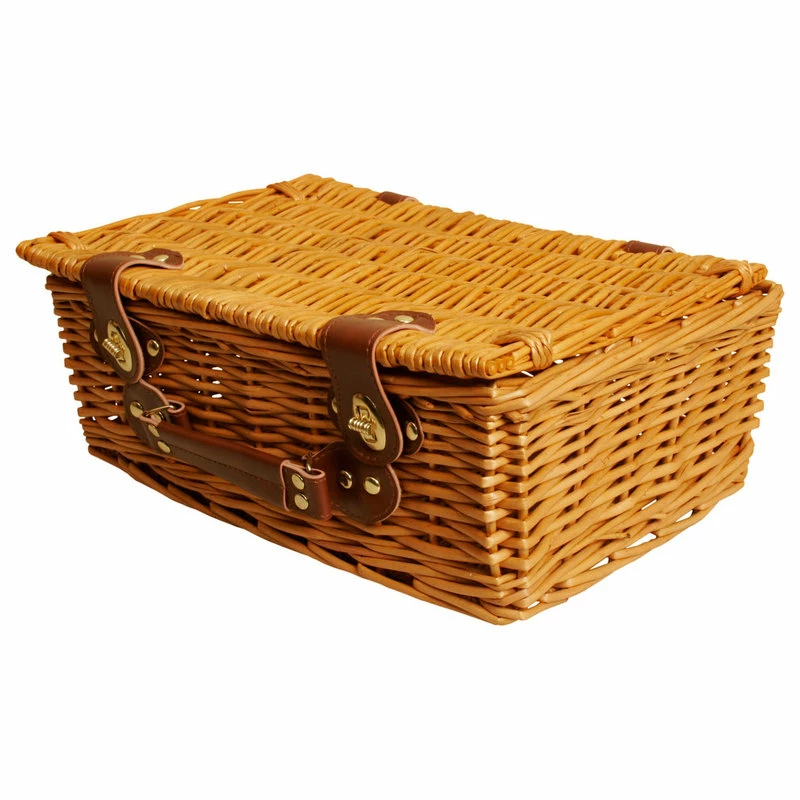 13″ WILLOW PICNIC BASKET. Accented with two faux leather and brass clasps. Size: 13″ x 8.5″ x 3.5″H
