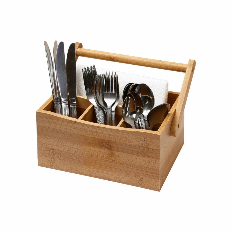 Keep your silverware collection organized with this beautiful bamboo cutlery caddy